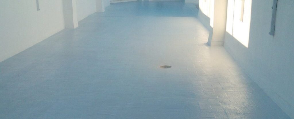 Impermeabilizacion en Valencia mediante sikafill 100 en color blanco armado con fibra de vidrio